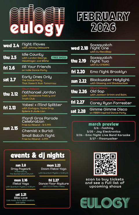 The price you see is all you pay. No hidden fees. Ever. Free Shows do not require tickets or RSVPs. All shows are all ages unless otherwise stated. Attendees under 18 must be accompanied by parent or guardian. Anyone under the age of 21 must vacate the premise at 11 PM.Full Calendar